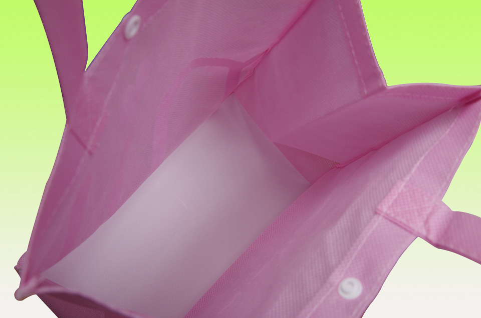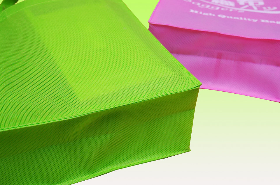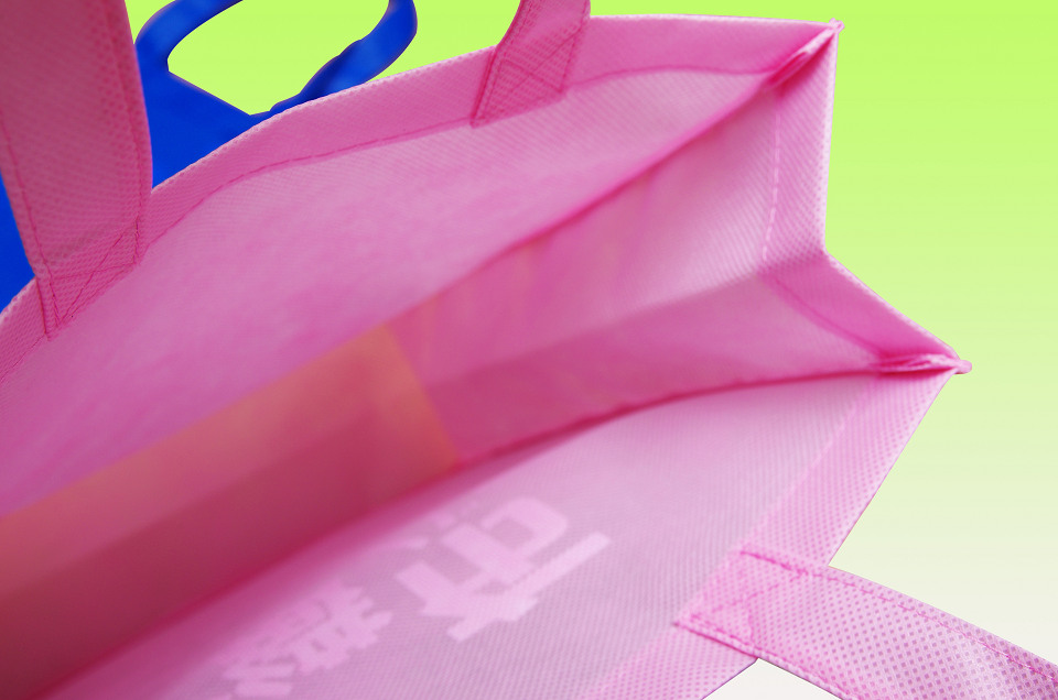 不織布製の手提げ袋/ショッピングショッピングバッグは、大量生産用の機械に原反をかけ、一気に縫製します。一般的な艶のない不織布、艶と固さの加工を施した不織布・PVCを表面にかぶせてビニール的な感触の不織布・金属調の表面加工を施した不織布などがあり、用途やコスト・高級感の兼ね合いで使い分けることが可能です。