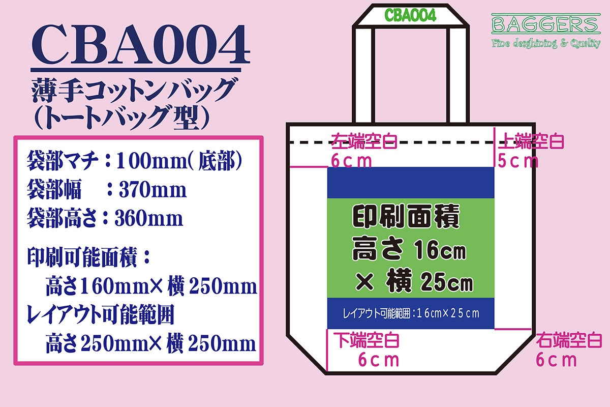 | 4 | CBA004 | 100mm(底) | 370mm | 360mm | 3オンス | 生成り/紺/黒 | 200枚 |